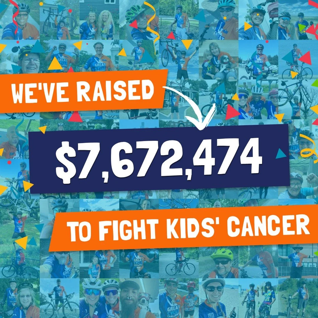 The 2024 Great Cycle Challenge has wrapped. Nearly 21,000 riders from across the country raised more than seven and half million dollars to fund childhood cancer research. The families of those kids that have fought a battle with cancer extend a heartfelt THANK YOU to everyone that supported the event this year!